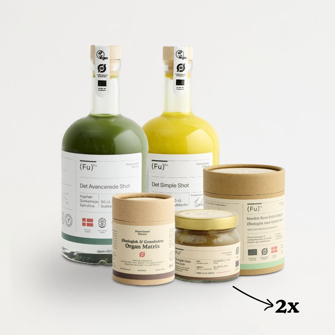 All-in pakken, er til dig som ikke kan gå ned på kroppens byggesten, nemlig kollagen naturens multivitamin (organ matrix) og dertil vores rene ingefærshots - få den leveret måned efter måned og boost kroppen med ægte rene kosttilskud og spar derudover ekstra 10% - nemmere bliver det altså ikke!
