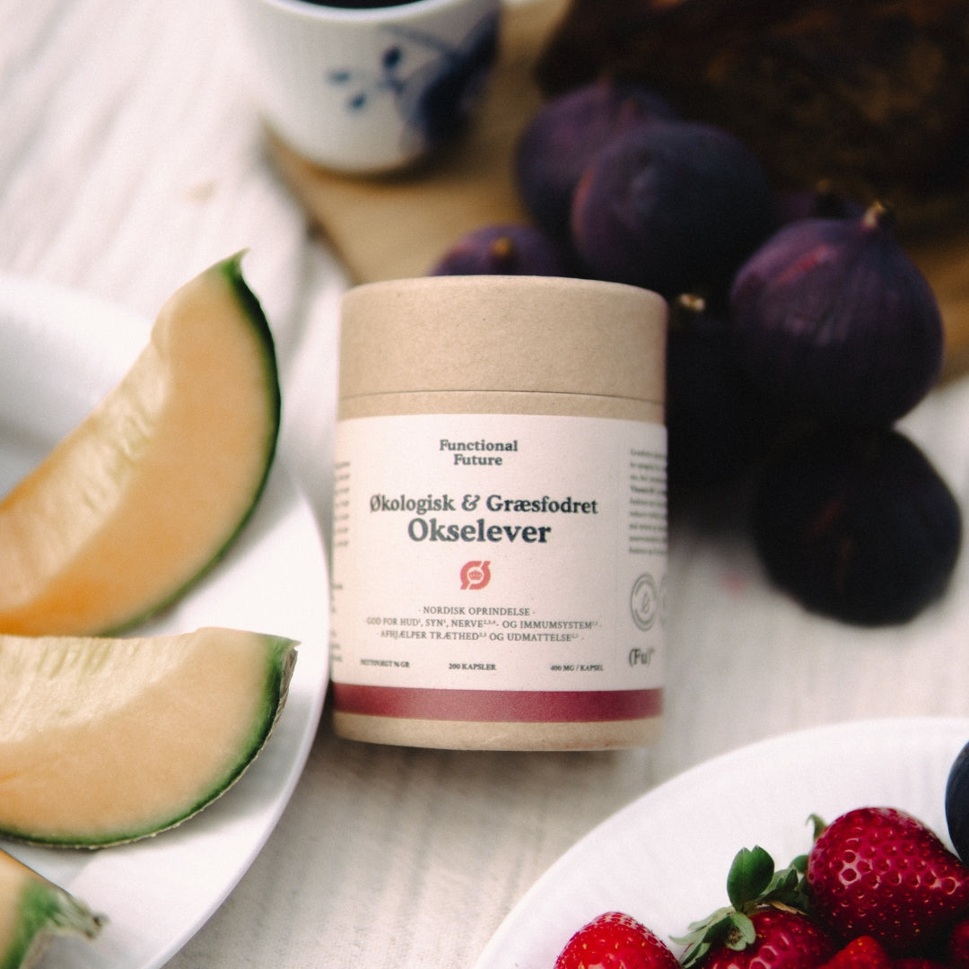 100% dansk okselever fra græsfodrede kvæg. Rig på jern, B-vitaminer og kolin – i kapsler uden fyldstoffer eller bindemidler.